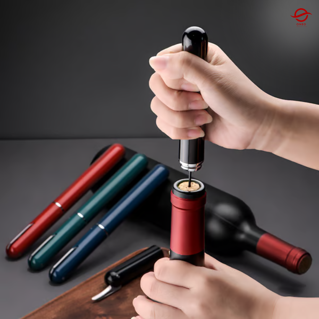 Com o Abridor de Vinho Portátil Oneo, abrir garrafas se torna uma tarefa simples e rápida. A bomba de ar facilita a remoção do corcho, poupando tempo e energia. Ideal para jantares ou eventos especiais, onde cada segundo conta.