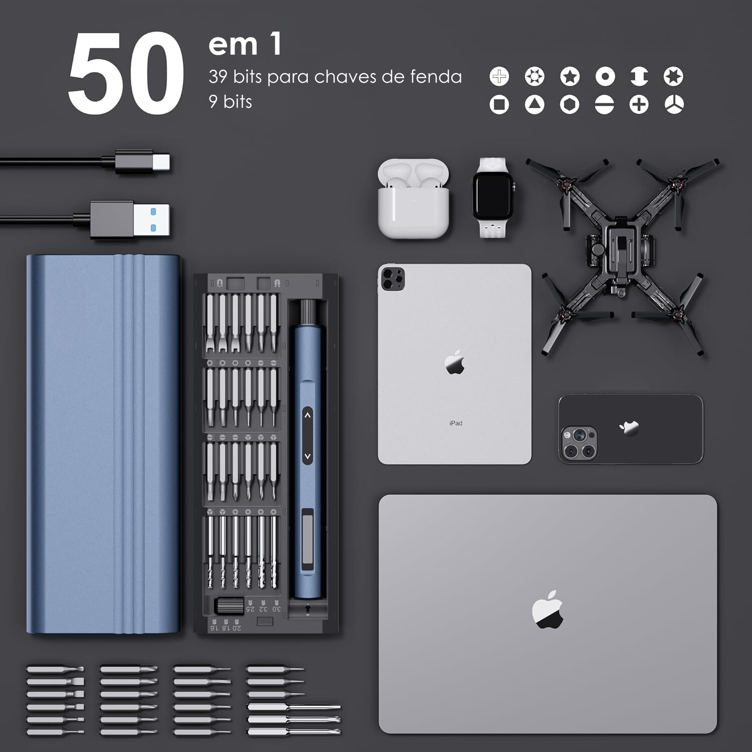 Ferramentas grandes e complicadas podem tornar as tarefas simples muito difíceis. Mas com a Aparafusadora Eléctrica sem fios, você ganha uma ferramenta multifuncional e portátil que facilita tudo. Desde reparos de iPhone até trabalhos detalhados em PCB, ela resolve todos os desafios com facilidade.