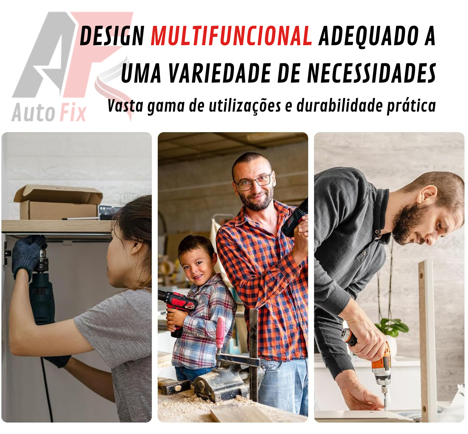 Ferramentas fracas e pesadas podem transformar uma simples tarefa doméstica em um verdadeiro desafio. Com o taladro elétrico recargable AutoFix, você tem a potência necessária para todos os seus projetos DIY em casa. Diga adeus ao esforço desnecessário e à frustração com ferramentas inferiores.