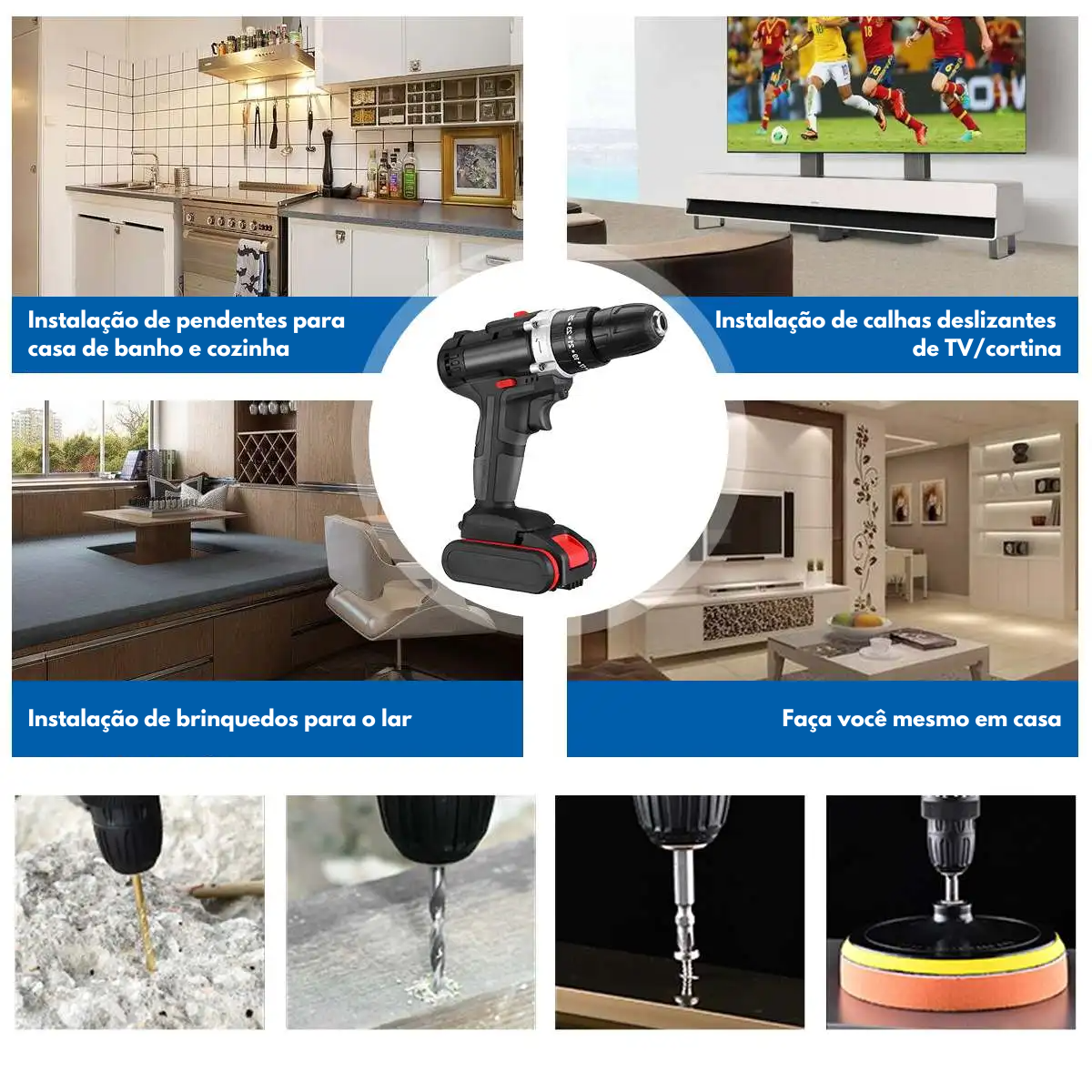 Chegou a Broca Sem Fio PerforaMax Inalámbrica! Com ela, você pode perfurar e parafusar com facilidade e sem esforço. Sua bateria recarregável e design leve tornam as tarefas domésticas muito mais acessíveis e rápidas. Esqueça as ferramentas pesadas e complicadas, e experimente a praticidade!