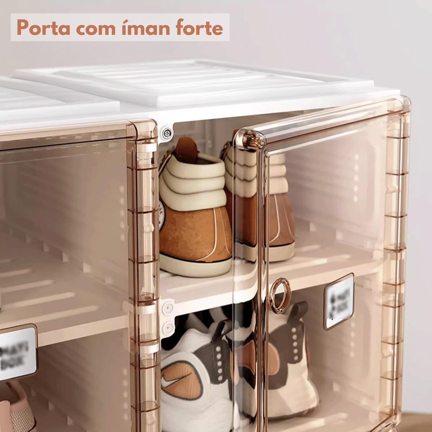 Nossa caixa transparente para tênis combina beleza e funcionalidade. Feita de acrílico resistente, é fácil de montar e limpar. Seu design com ímã garante que seus tênis fiquem bem protegidos e exibidos.