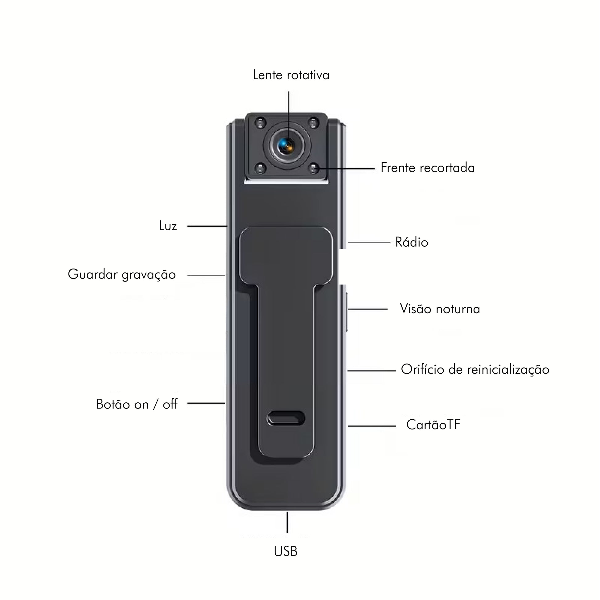 O clipe resistente e o design compacto permitem que seja fixado ao peito ou à mochila. Regista os incidentes discretamente, perfeito para ciclistas, estafetas e seguranças.