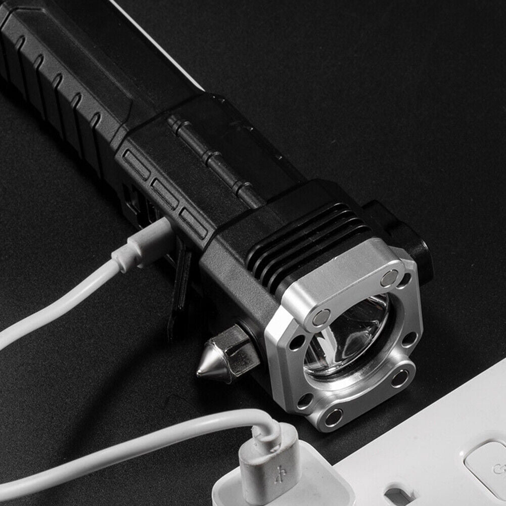 A Lanterna multifunções foi projetada para ser a sua companheira de confiança em qualquer situação. Com um recarregamento fácil via USB, você sempre terá luz disponível. O martelo de segurança e a faca integrados garantem que você possa lidar com emergências rapidamente, enquanto o power bank mantém seus dispositivos carregados.